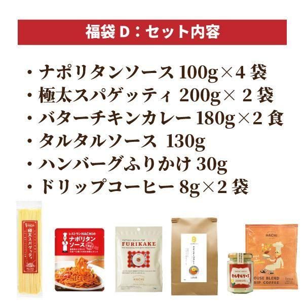 SOLD OUT【アラカルト詰合せ】・極太スパゲッティ2袋・ナポリタンソース4袋・タルタルソース1個・バターチキンカレー(2食入)1袋 ・ハンバーグふりかけ1袋 ・ドリップコーヒー2袋 -