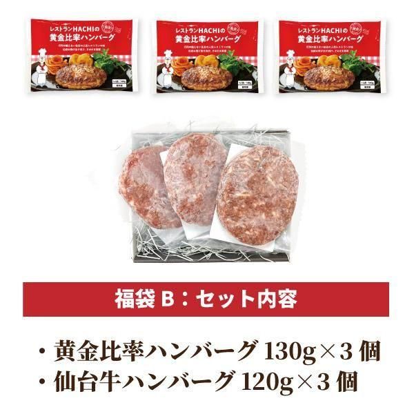 【初売福袋B】仙台牛100%ハンバーグ 3個 & 黄金比率ハンバーグ3個 セット