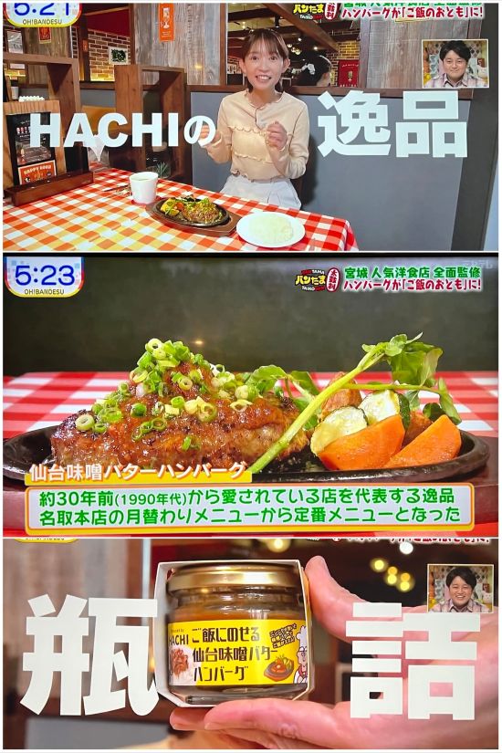 「ご飯にのせる仙台味噌バターハンバーグ」をミヤギテレビさんで取り上げていただきました。